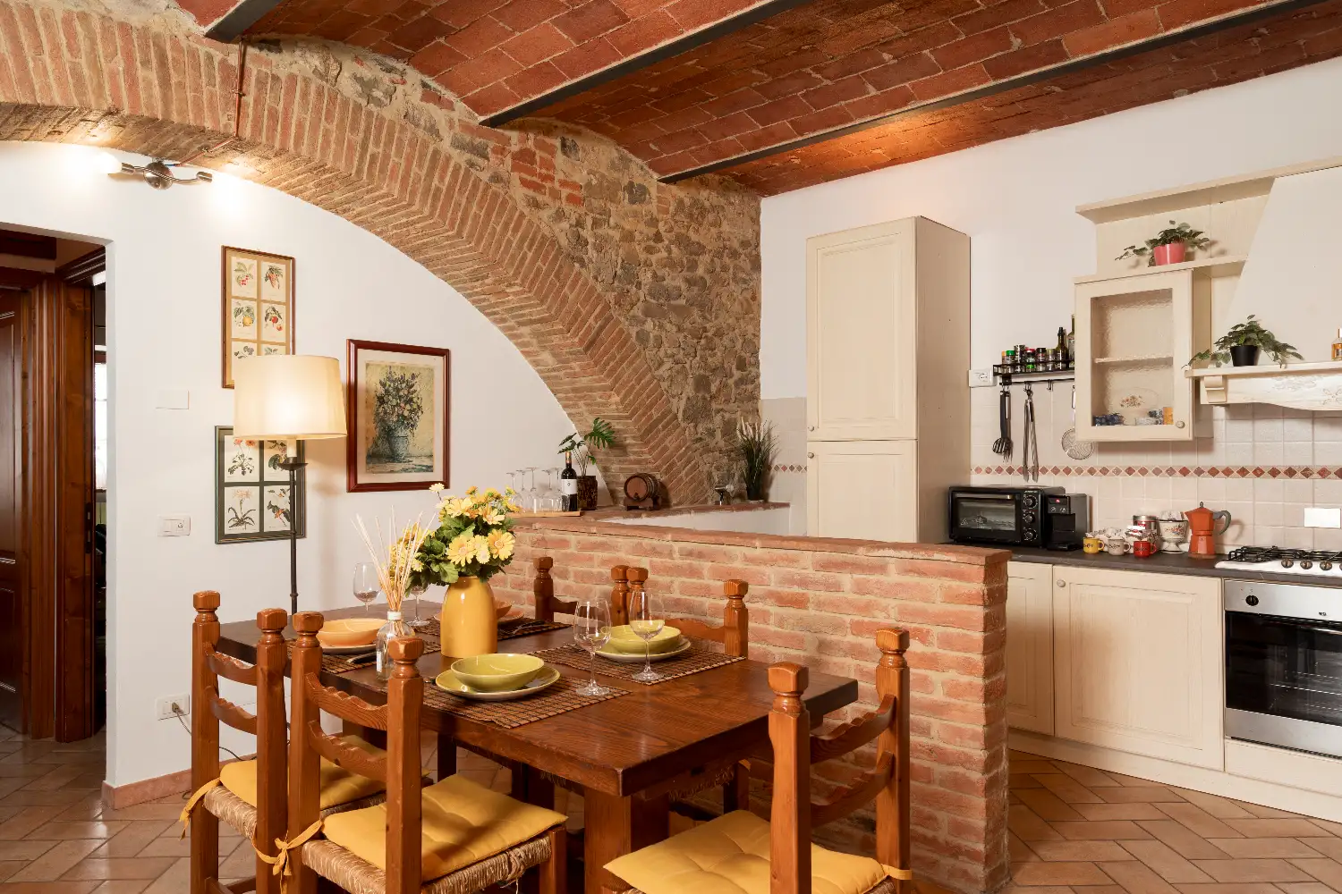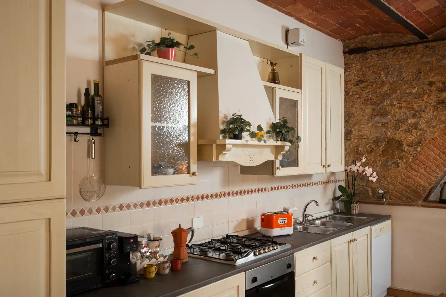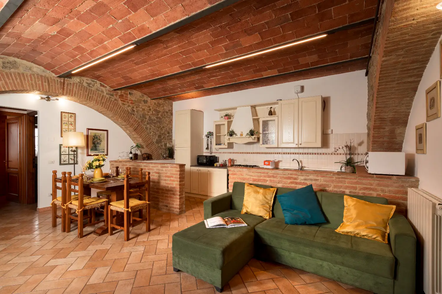 Può ospitare fino a 5 persone, con due camere da letto, due bagni, una cucina attrezzata e spazi interni caldi e accoglienti, perfetti per rilassarsi dopo una giornata alla scoperta della Toscana.